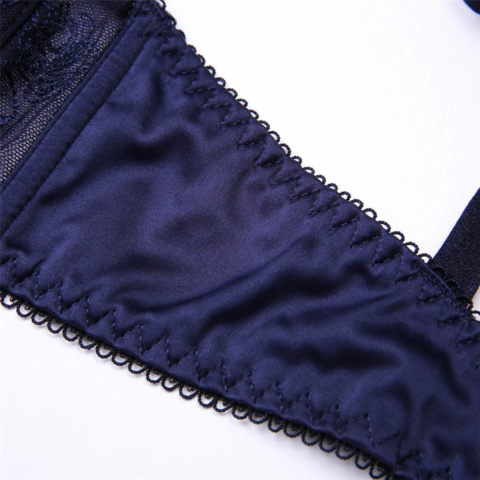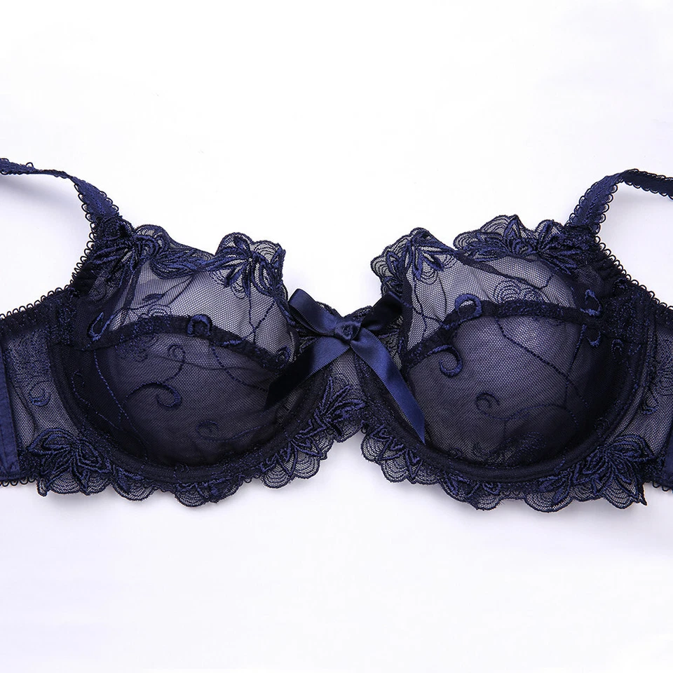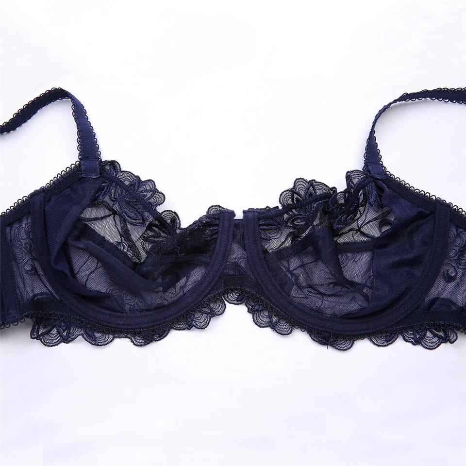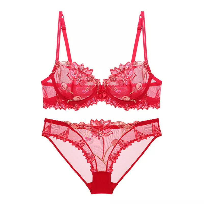 Women’s Embroidered Unlined Bra Set Sexy Transparent Lace Underwear