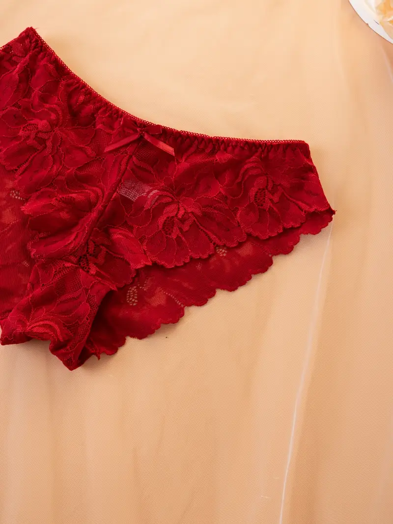 • Women's Embroidered Unlined Bra Set Sexy Transparent Lace Underwear